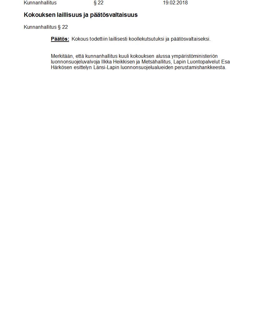Pöytäkirja 19.02.2018 Pykälä 22
