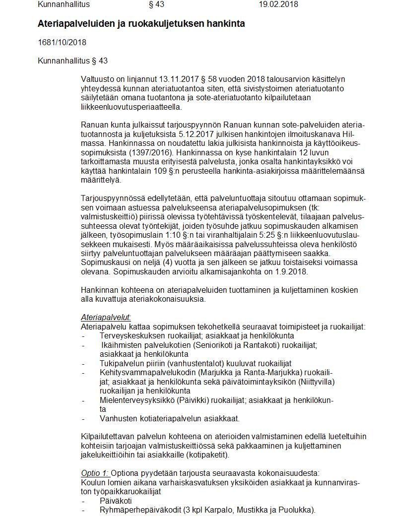 Pöytäkirja 19.02.2018 Pykälä 43