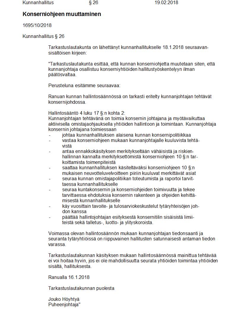 Pöytäkirja 19.02.2018 Pykälä 26