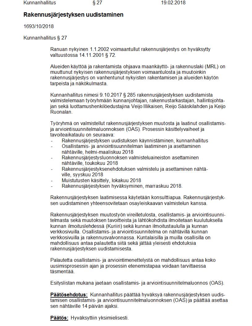 Pöytäkirja 19.02.2018 Pykälä 27