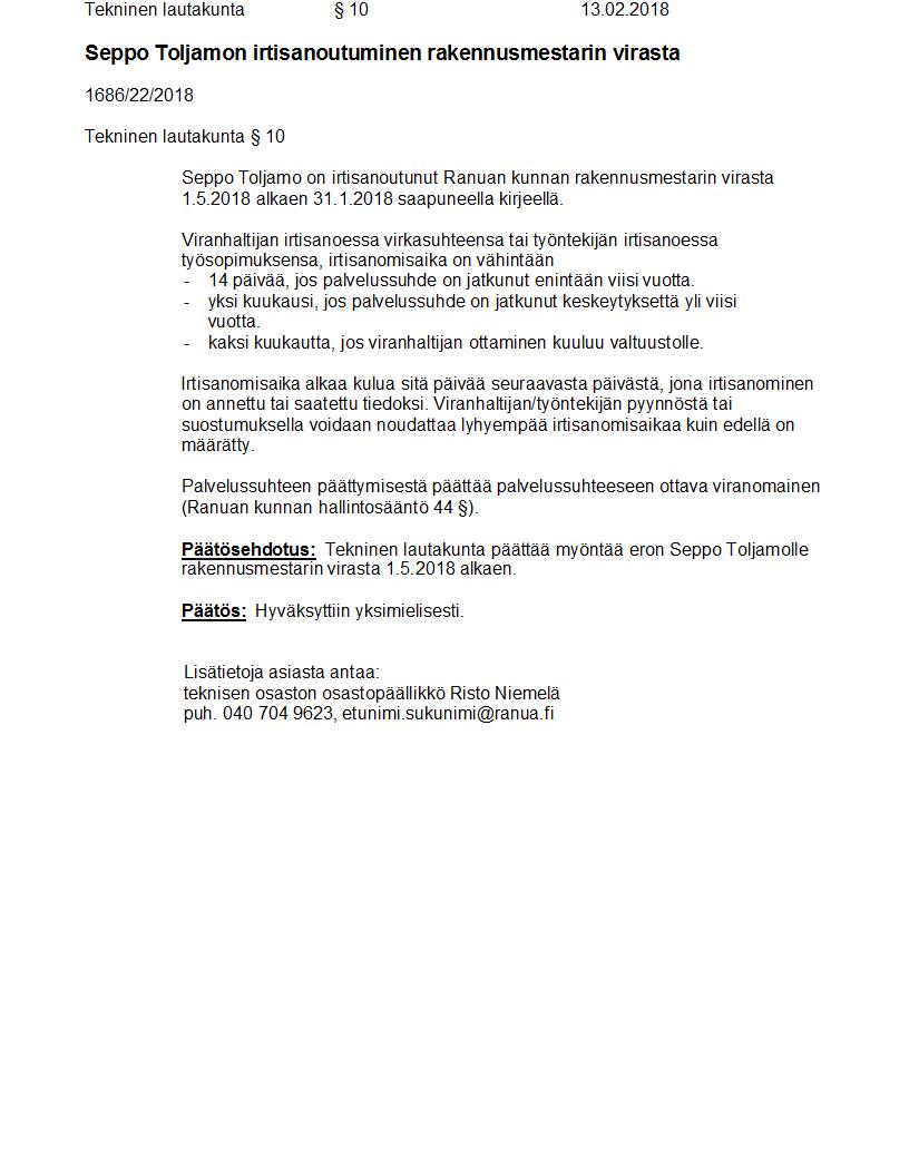 Pöytäkirja 13.02.2018 Pykälä 10