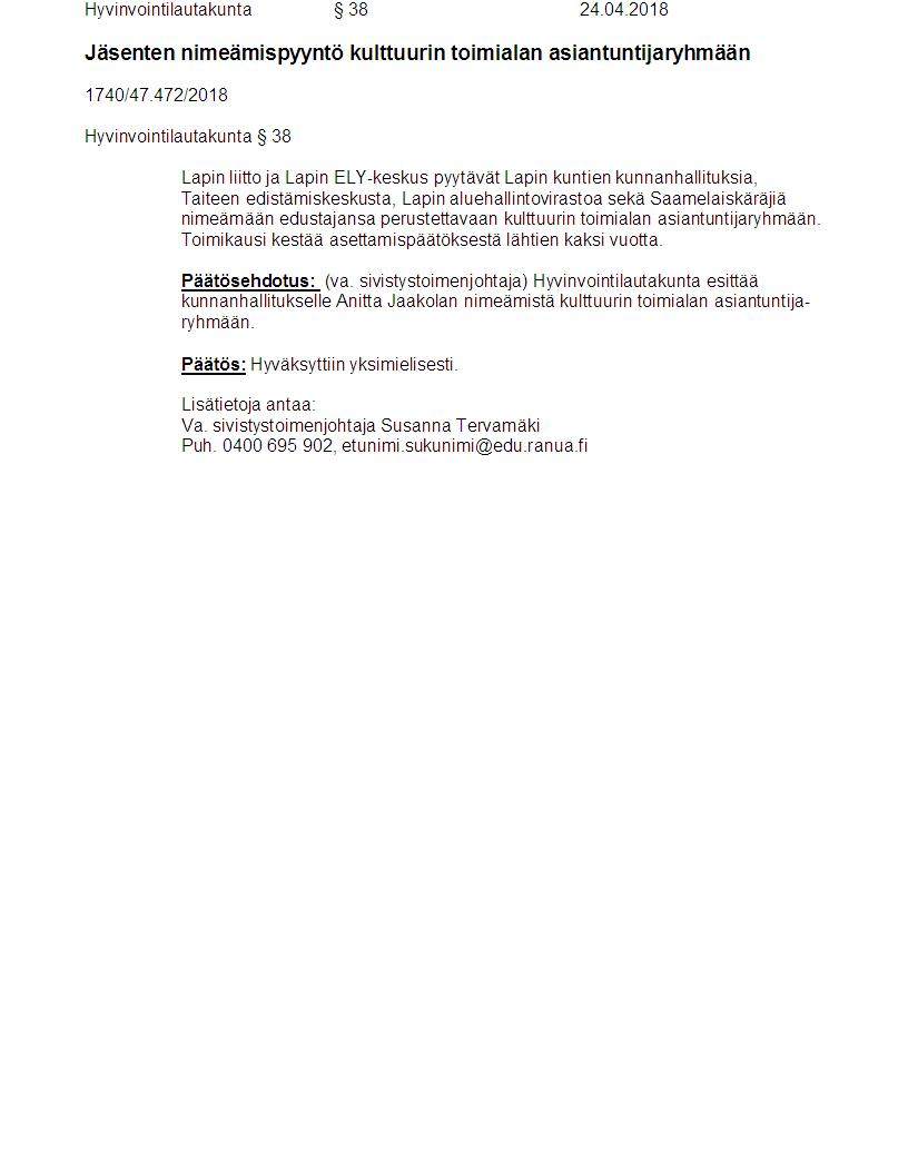 Pöytäkirja 24.04.2018 Pykälä 38