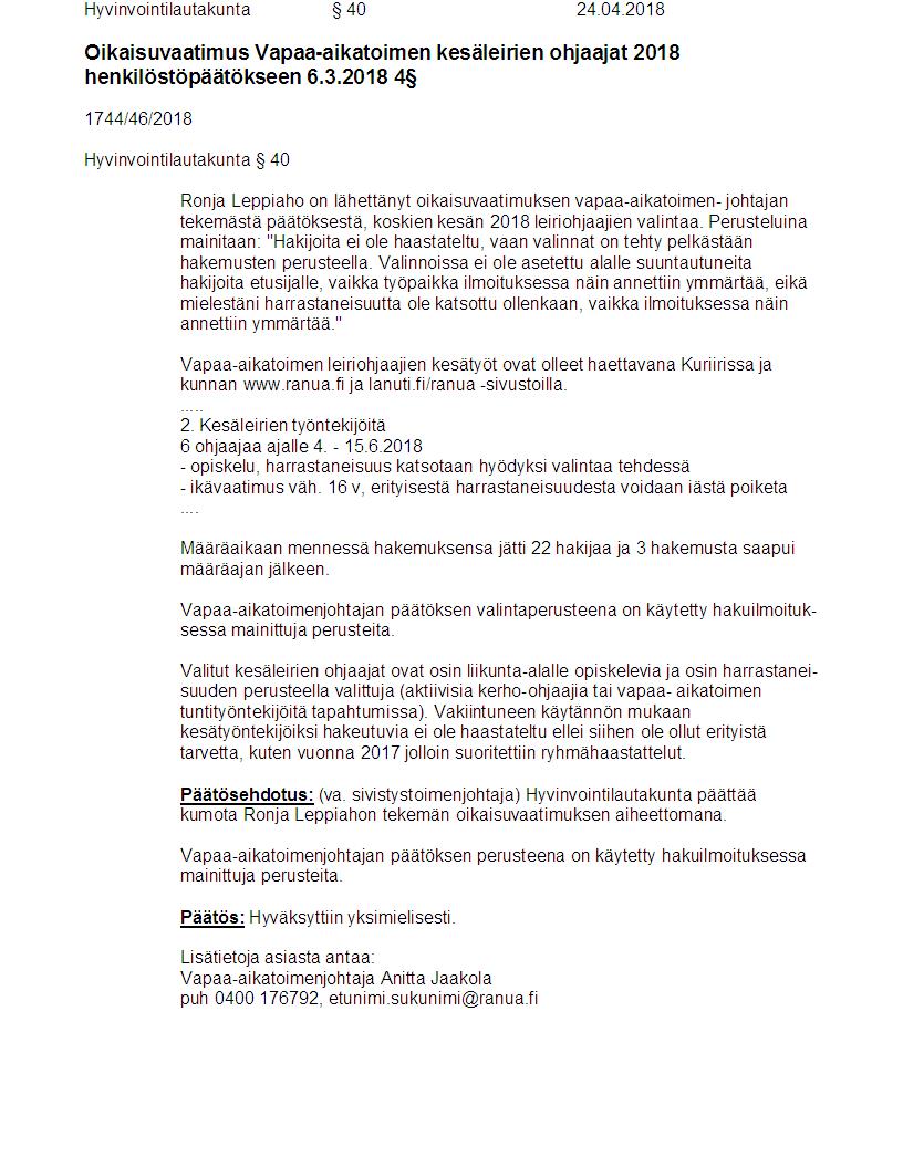 Pöytäkirja 24.04.2018 Pykälä 40
