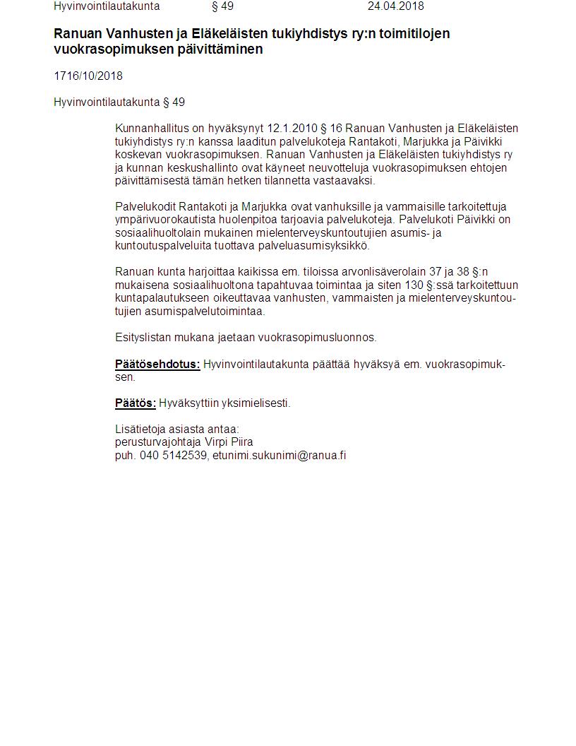 Pöytäkirja 24.04.2018 Pykälä 49