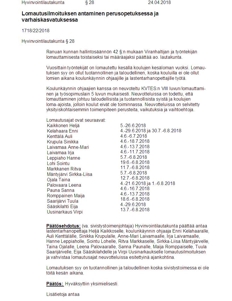 Pöytäkirja 24.04.2018 Pykälä 28