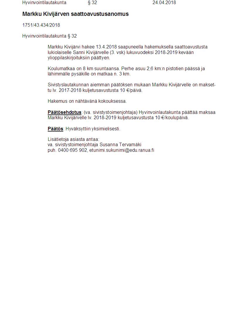 Pöytäkirja 24.04.2018 Pykälä 32