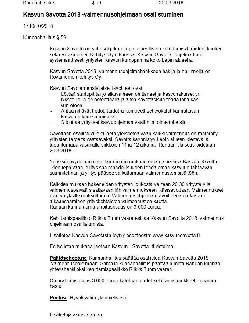 Pöytäkirja 26.03.2018 Pykälä 59