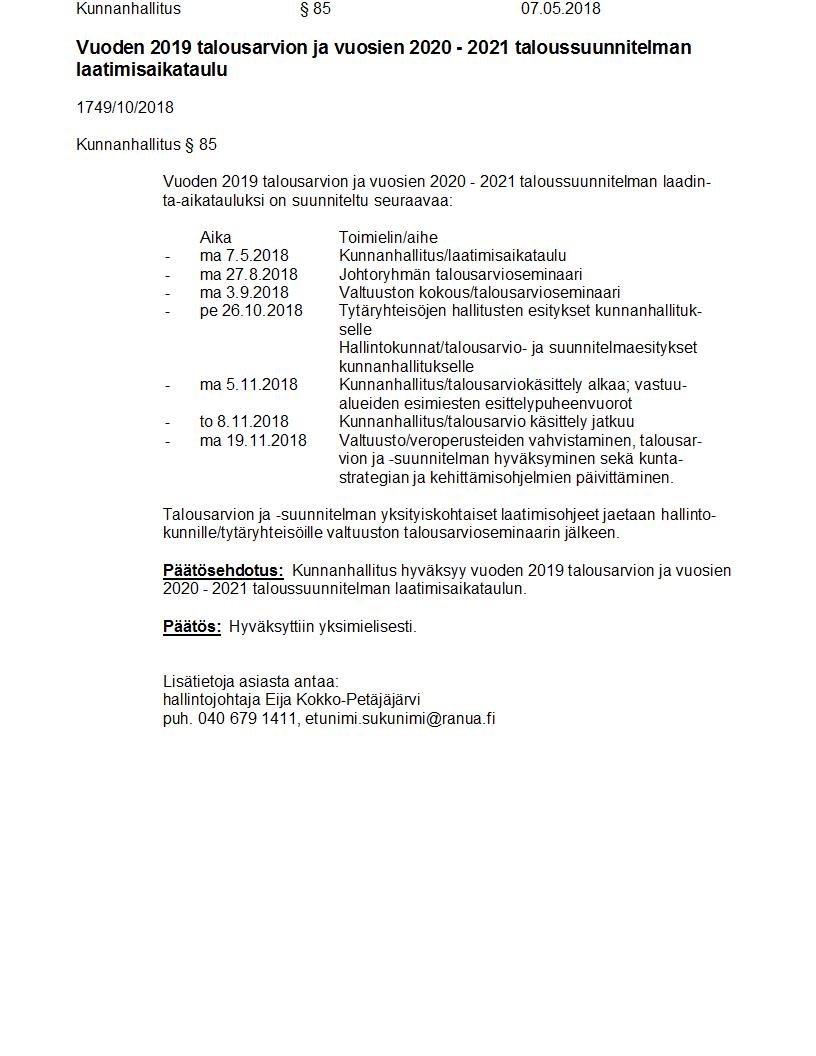Pöytäkirja 07.05.2018 Pykälä 85