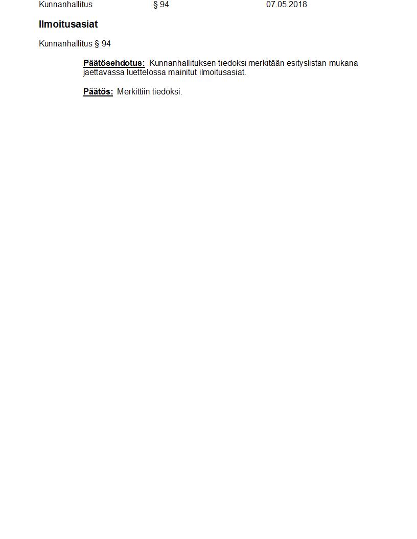 Pöytäkirja 07.05.2018 Pykälä 94