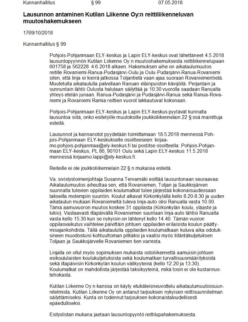Pöytäkirja 07.05.2018 Pykälä 99