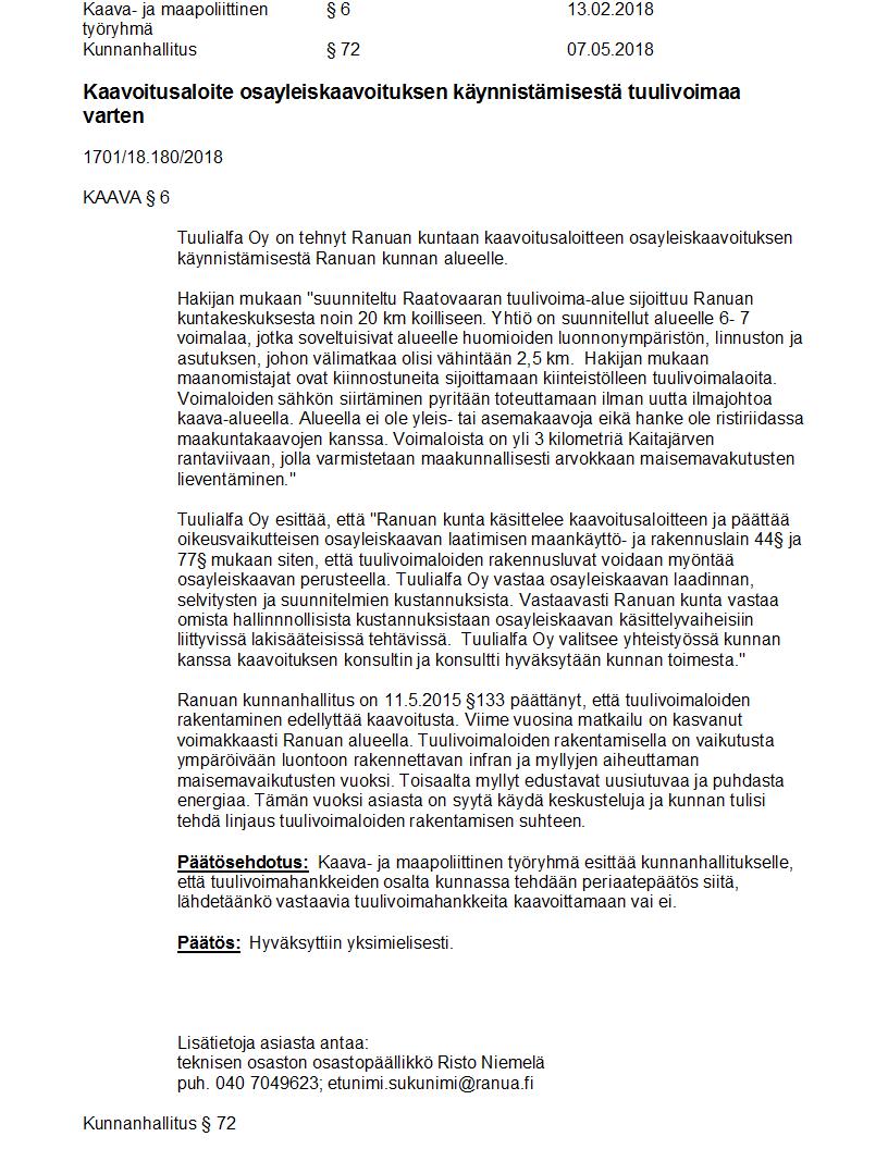 Pöytäkirja 07.05.2018 Pykälä 72