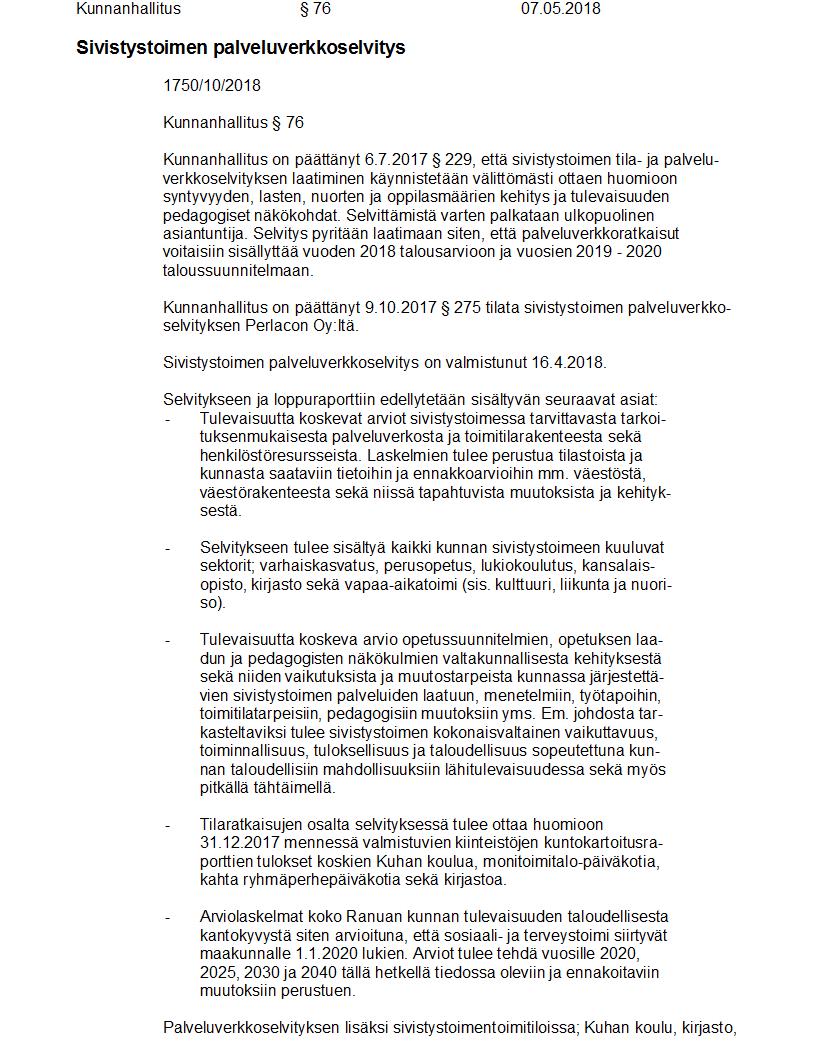 Pöytäkirja 07.05.2018 Pykälä 76