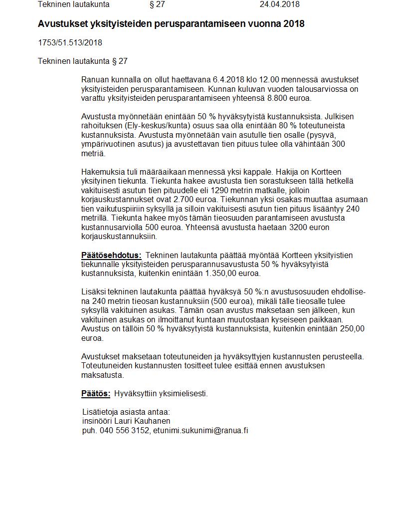Pöytäkirja 24.04.2018 Pykälä 27