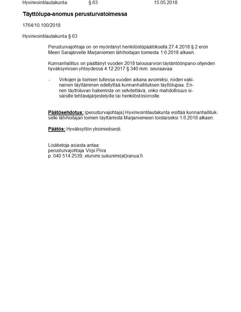 Pöytäkirja 15.05.2018 Pykälä 63