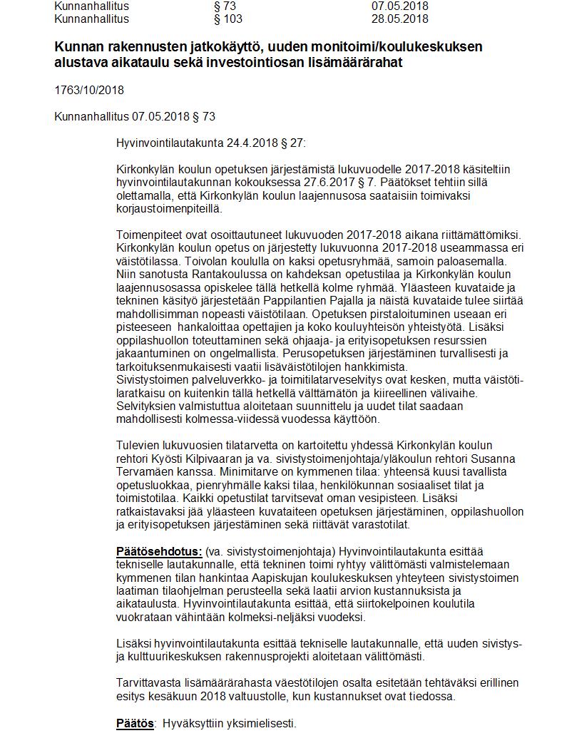 Pöytäkirja 28.05.2018 Pykälä 103