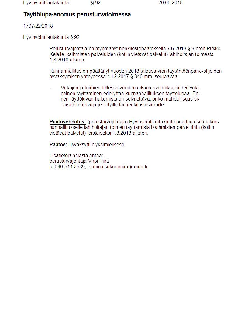 Pöytäkirja 20.06.2018 Pykälä 92