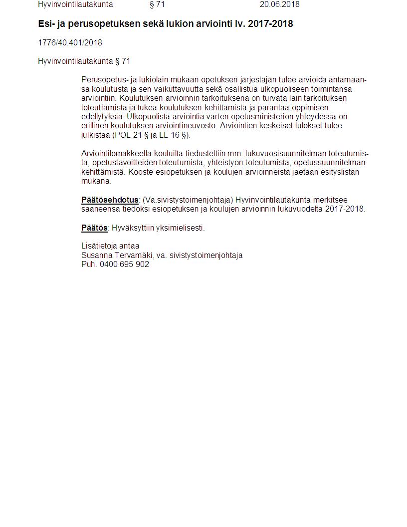 Pöytäkirja 20.06.2018 Pykälä 71