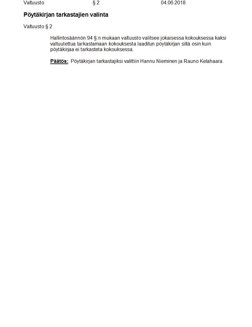 Pöytäkirja 04.06.2018 Pykälä 2