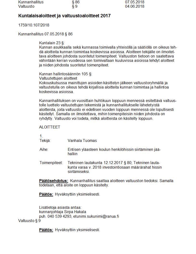Pöytäkirja 04.06.2018 Pykälä 9
