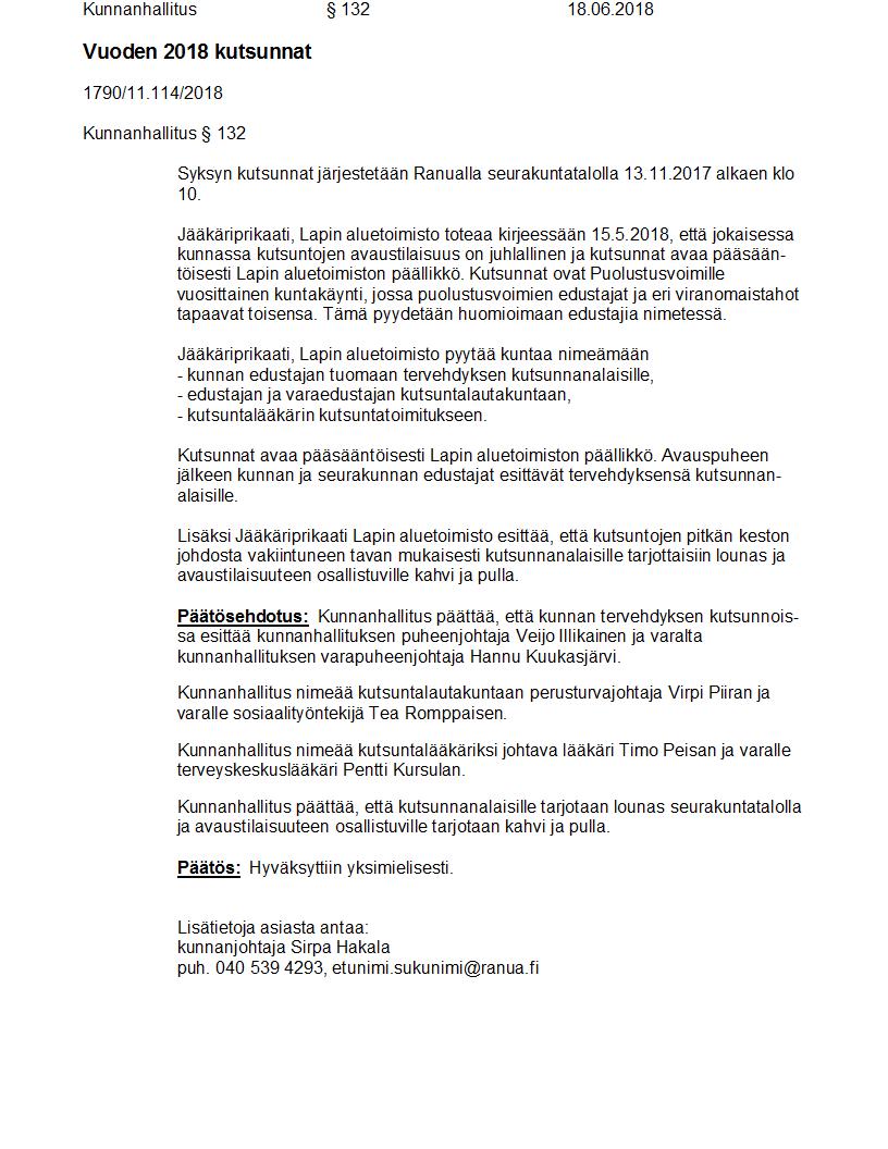 Pöytäkirja 18.06.2018 Pykälä 132