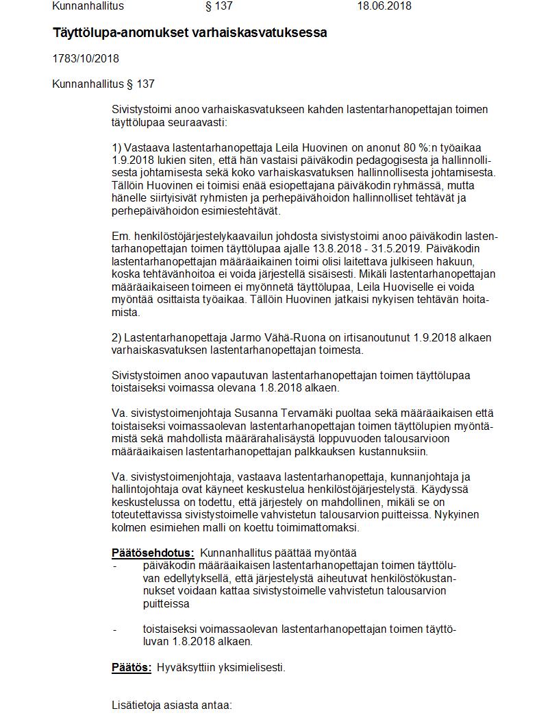Pöytäkirja 18.06.2018 Pykälä 137