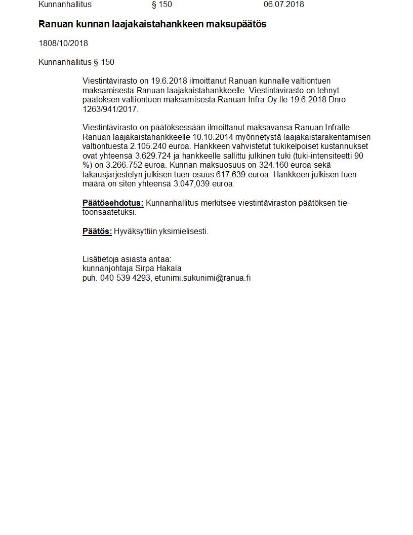Pöytäkirja 06.07.2018 Pykälä 150