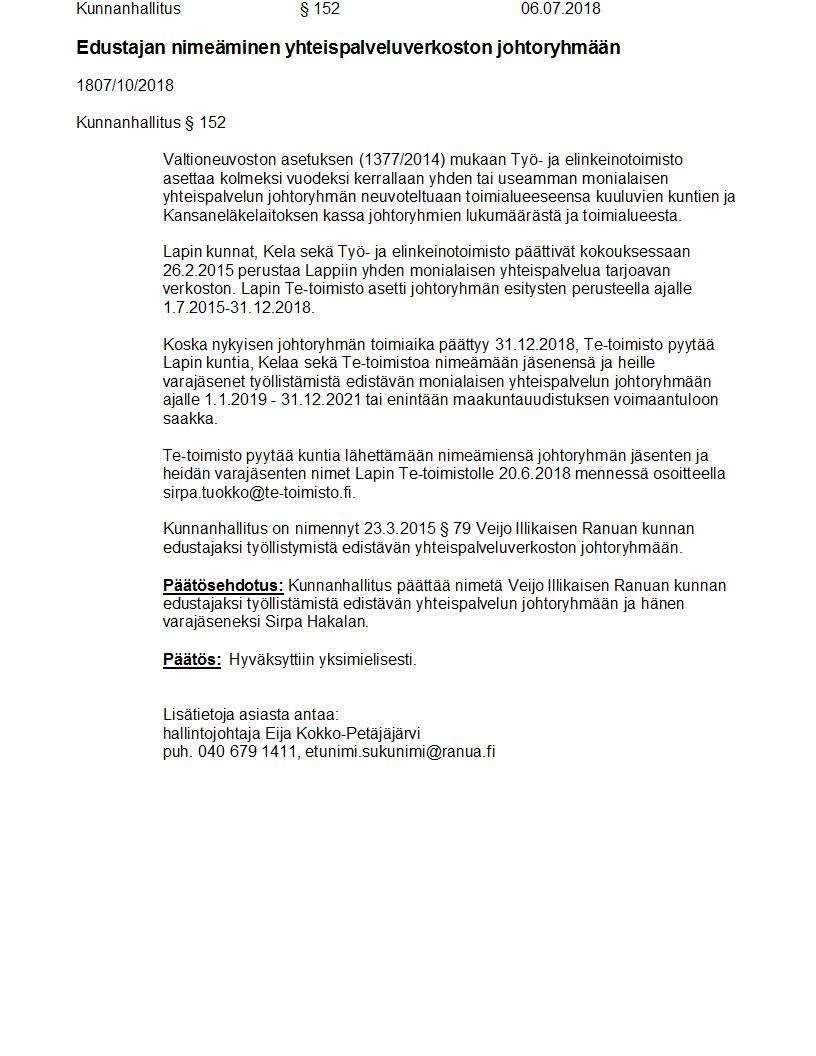 Pöytäkirja 06.07.2018 Pykälä 152