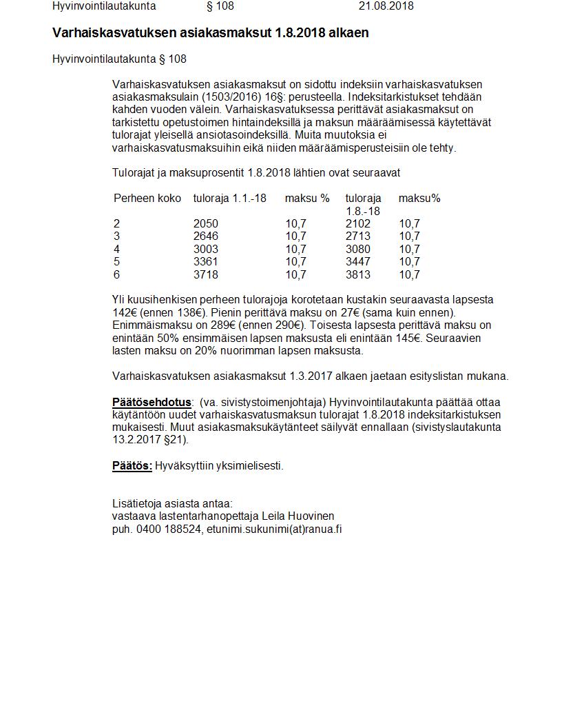 Pöytäkirja 21.08.2018 Pykälä 108