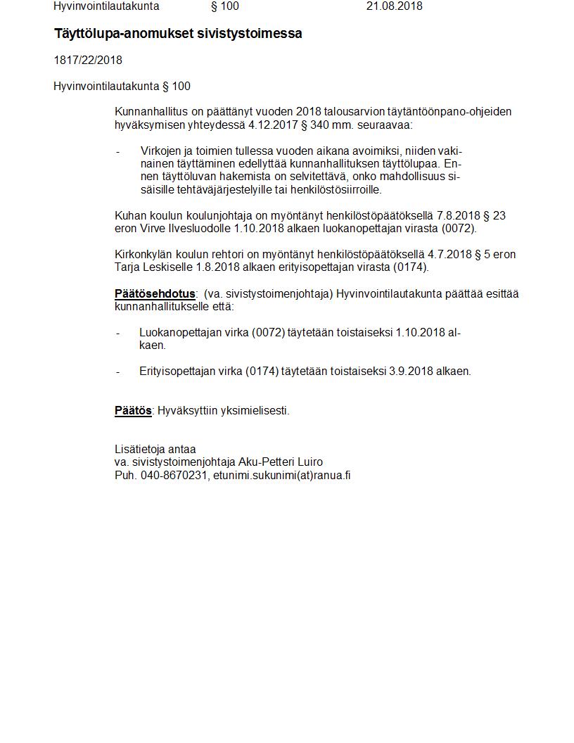 Pöytäkirja 21.08.2018 Pykälä 100