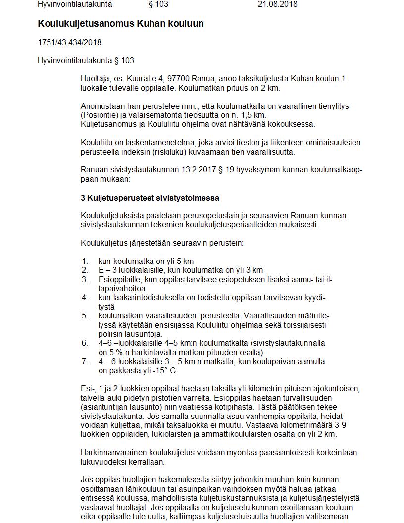 Pöytäkirja 21.08.2018 Pykälä 103