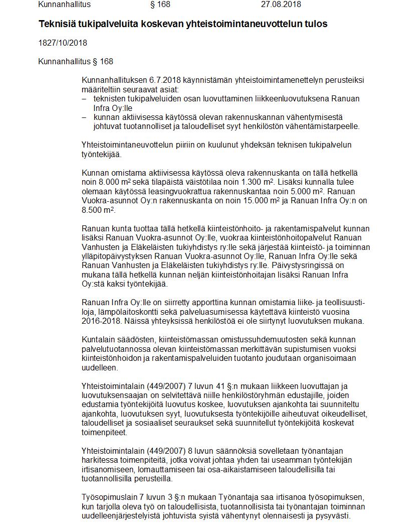 Pöytäkirja 27.08.2018 Pykälä 168
