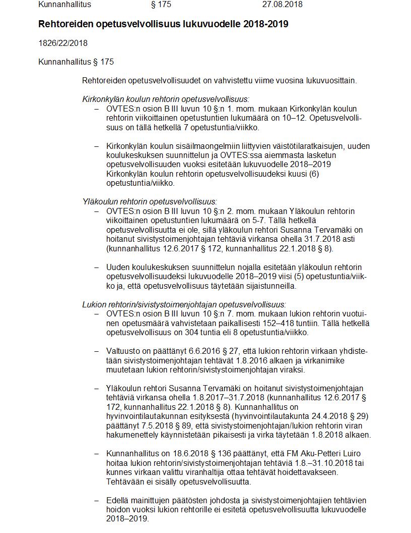 Pöytäkirja 27.08.2018 Pykälä 175
