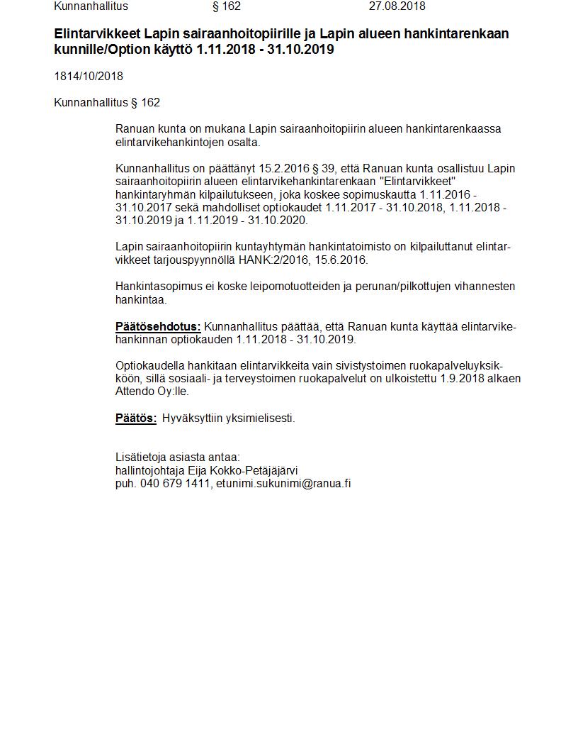 Pöytäkirja 27.08.2018 Pykälä 162
