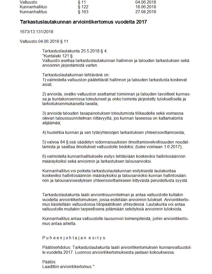 Pöytäkirja 27.08.2018 Pykälä 163