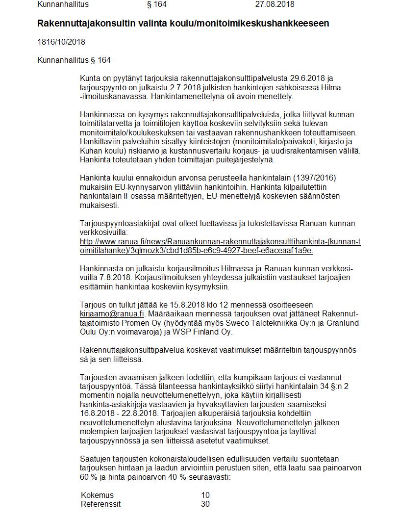Pöytäkirja 27.08.2018 Pykälä 164
