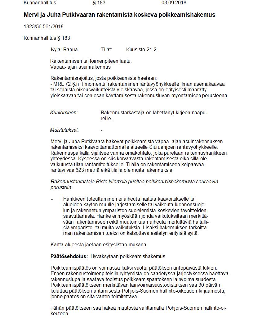 Pöytäkirja 03.09.2018 Pykälä 183