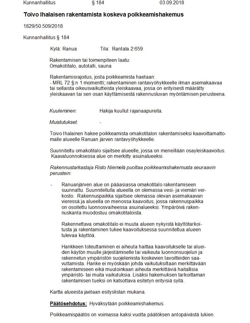 Pöytäkirja 03.09.2018 Pykälä 184
