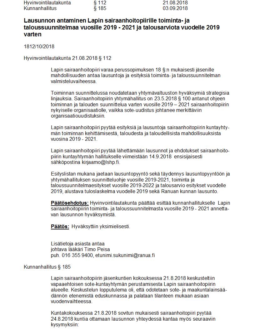 Pöytäkirja 03.09.2018 Pykälä 185