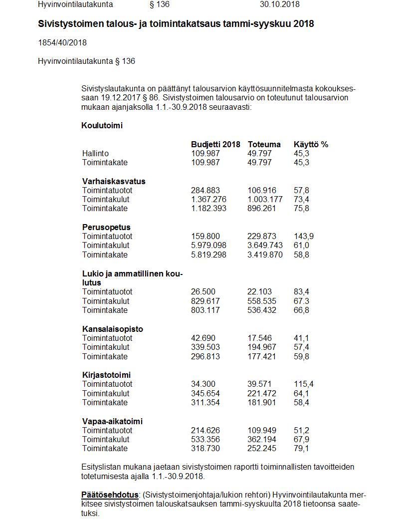 Pöytäkirja 30.10.2018 Pykälä 136