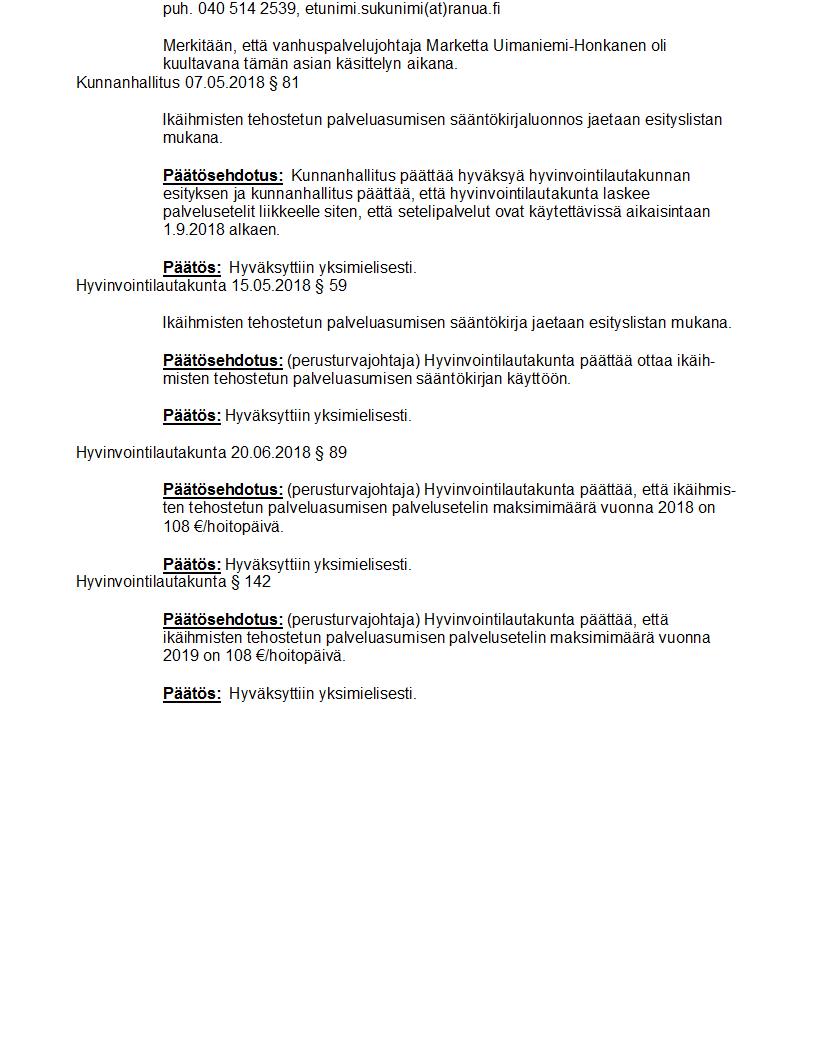 Pöytäkirja 30.10.2018 Pykälä 142