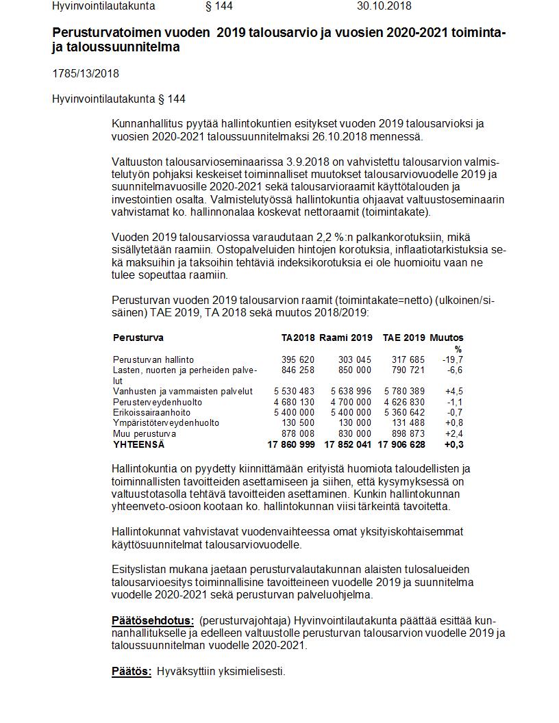 Pöytäkirja 30.10.2018 Pykälä 144