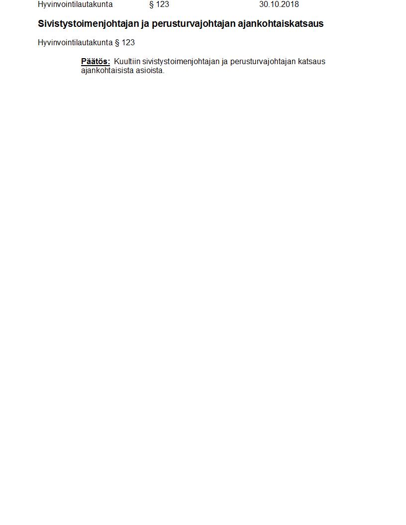 Pöytäkirja 30.10.2018 Pykälä 123