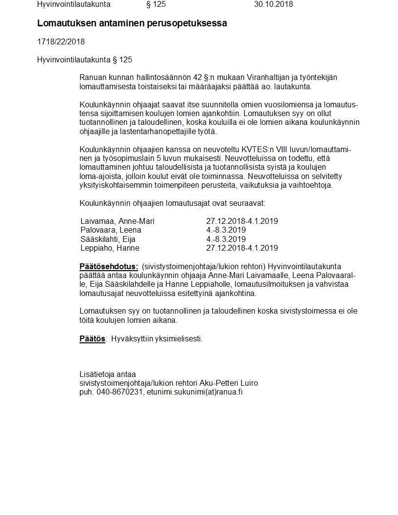 Pöytäkirja 30.10.2018 Pykälä 125