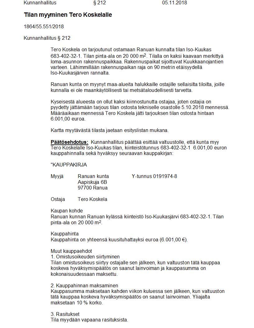 Pöytäkirja 05.11.2018 Pykälä 212