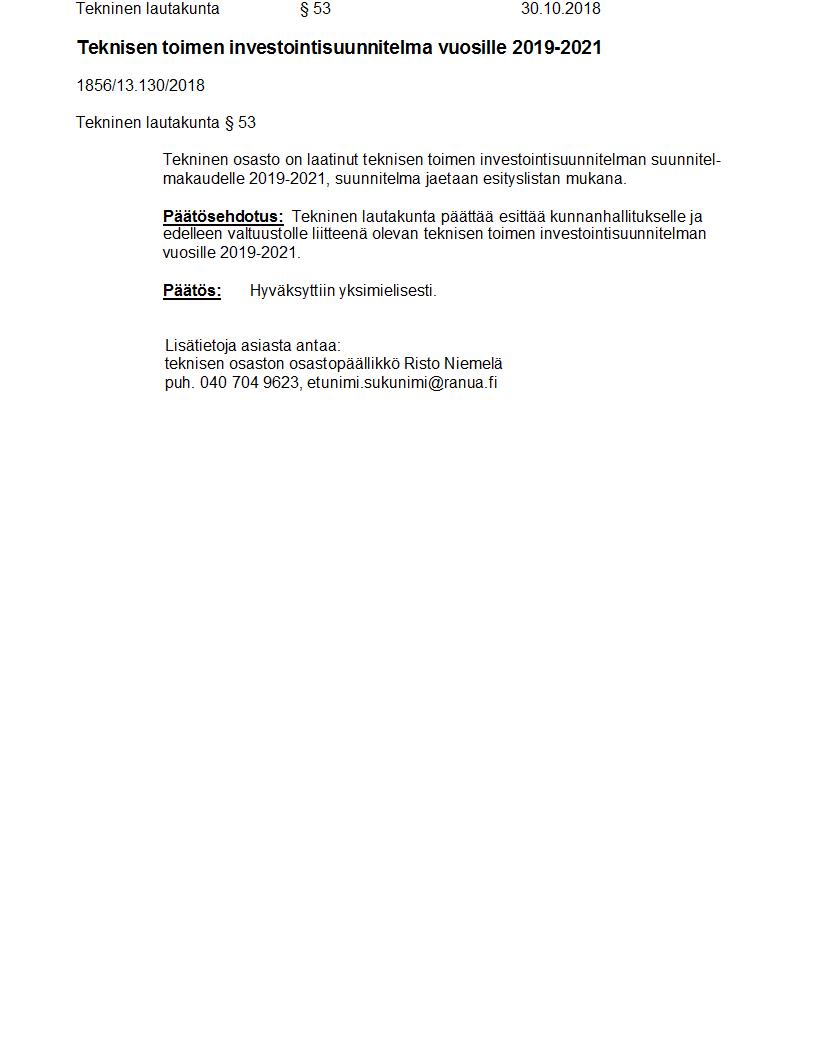 Pöytäkirja 30.10.2018 Pykälä 53
