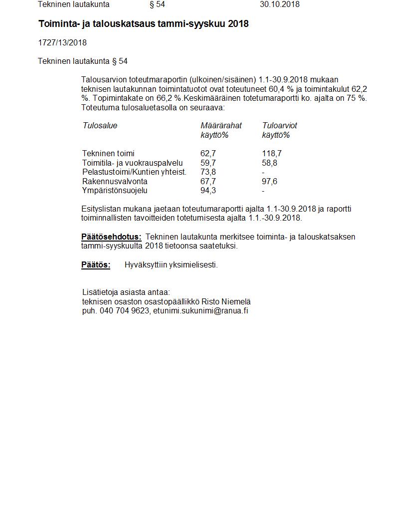 Pöytäkirja 30.10.2018 Pykälä 54