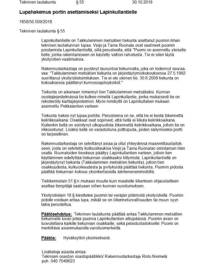 Pöytäkirja 30.10.2018 Pykälä 55