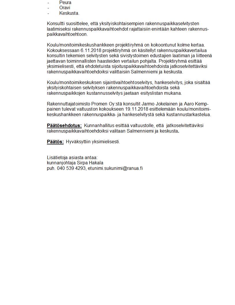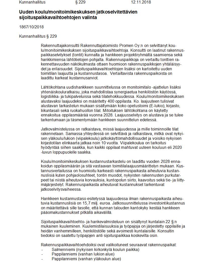 Pöytäkirja 12.11.2018 Pykälä 229