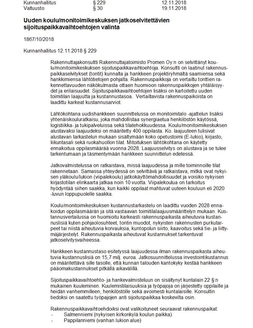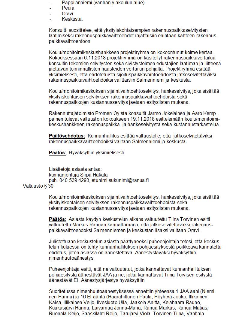 Pöytäkirja 19.11.2018 Pykälä 30