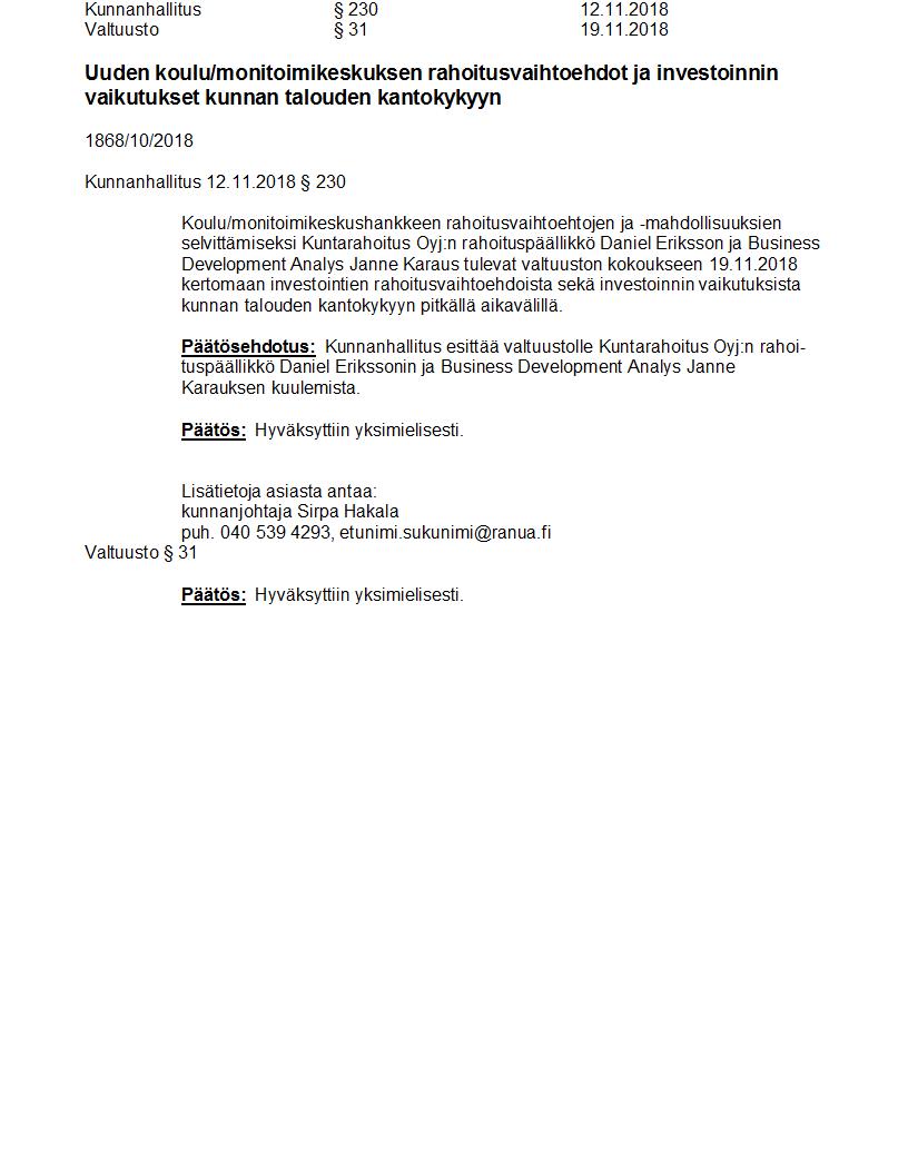 Pöytäkirja 19.11.2018 Pykälä 31
